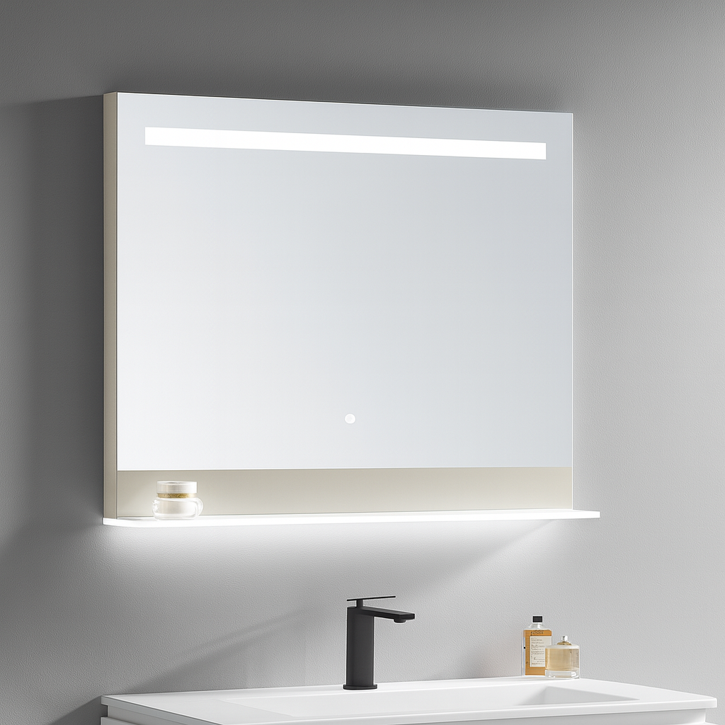 Gương treo tường hình chữ nhật Krene S1000 Cao cấp – Có kệ để đồ – Kính Dày 5 li – Có Đèn Led – Cảm Ứng Hiện Đại – Khung viền hợp kim chống nước