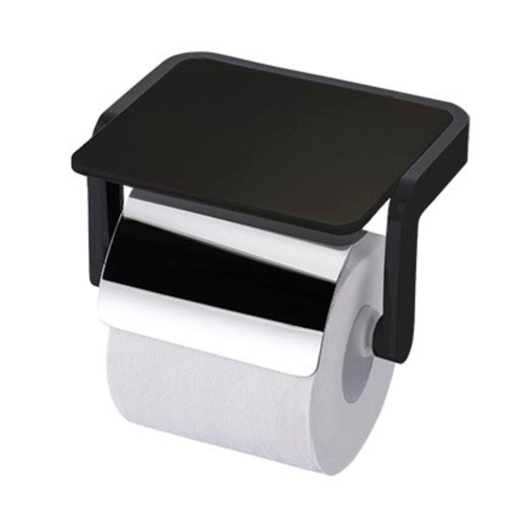 Lô giấy vệ sinh Krene KH-705B-2C sở hữu thiết kế tiện dụng với phần giá đỡ bằng nhôm màu đen, cho phép bạn đặt điện thoại, chìa khóa, đồng hồ hoặc các vật dụng cá nhân nhỏ gọn một cách vệ sinh và thuận tiện trong phòng tắm.